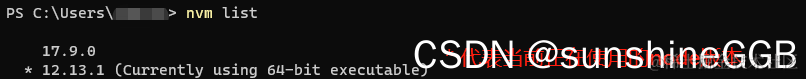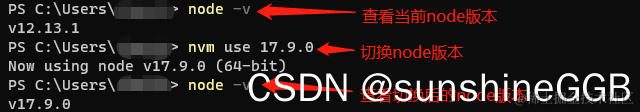 ④ nvm use xxx:切换版本,xxx指具体版本号 如nvm use 12.13.1