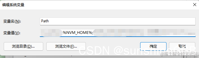 ① 新建 NVM_HOME 的系统变量,变量值为NVM的安装路径