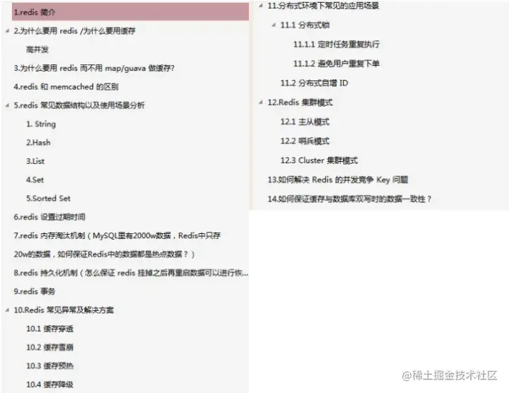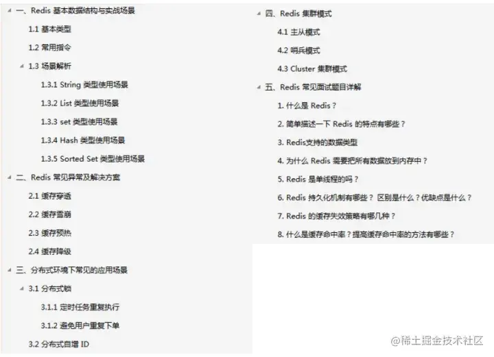 本笔记适合人群:前半部分适合 Redis 初学者快速入门和提高;后半部分适合对于 Redis 有一定了解的开发者,深入挖掘其原理。由于篇幅原因,本文只展示了目录和内容截图,**有需要学习的小伙伴**添加小助理即可免费获取 ikt4435