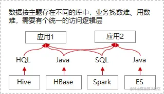 在采用建设全局统一数据平台的方式,解决了系统级的数据割裂问题,还会面临下一个问题:一方面因为业务使用数据的方式不同,数据根据使用方式已经采用了10+种引擎、组件,散落在高性能点查、明细查询、全文检索等数据组件中;另一方面,SQL语言因为数据库在近几十年来的不断普及,其以易部署、易使用、操作灵活,为各企业培养了自己的DBA等IT专业人才。当客户深度使用数据的时候,客户需要懂业务的分析师能统一操作界面,使用业界通用的、自己熟知的方法和工具,直接操作数据,以敏捷应对外部环境变化,保持数据信息的鲜活和整个组织经营的敏捷灵活性。此时数据平台的入口分散、技术门槛高就成为数据平台高效使用的另外一大障碍。
