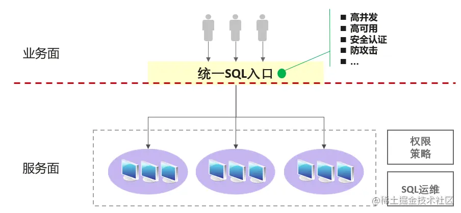 “统一SQL入口”可以极大的降低业务面的对接复杂度与使用成本,使得业务使用方、最终用户只需要关注SQL业务本身即可,而不必过多关注技术平台层面的使用细节。