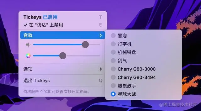 这个软件是一个打字的声音特效,能让你在编辑打字的时候发出霹雳吧啦的打字声,比较有沉浸感,让打字没那么枯燥。
