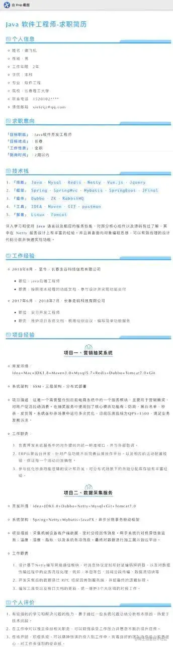 - 专业知识和项目经验在精不在多,尤其是项目经验一定要写自己熟悉的且有内容可说的,不要认为写得越多越好;