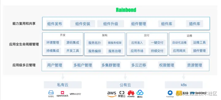 应用层:Rainbond 是一个云原生应用管理平台,使用简单,不需要懂容器、Kubernetes 和底层复杂技术。