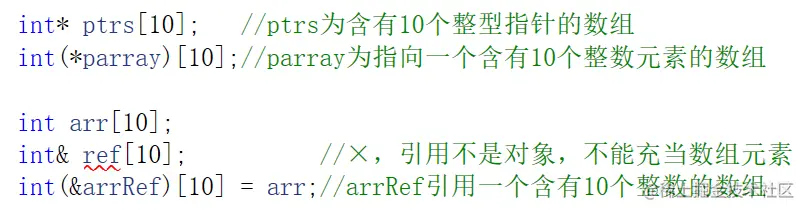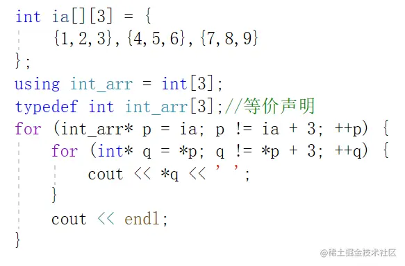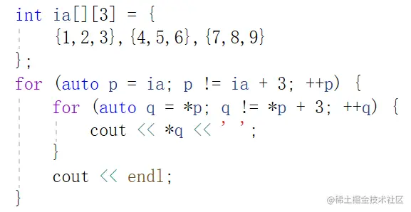 - C++11新标提出,使用auto避免在数组前面显式声明指针类型: