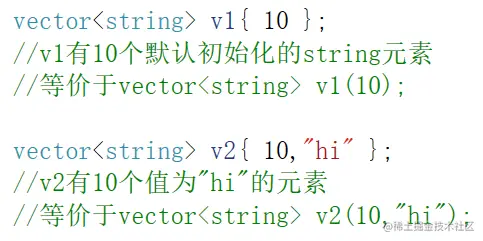 vector v5 {a,b,c,...} 等价于 vector v5 = {a,b,c,...} //v5包含{}内个数的元素,每个元素被赋相应初始值