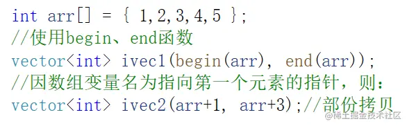 - vector v2(v1) 等价于 vector v2 = v1 //v1所有元素拷贝到v2