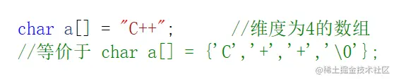 - 字符数组可以用字符串字面值初始化,字面值结尾处的空字符也会被拷贝进数组。