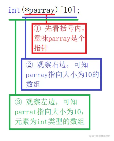 对于这类数组,应该从数组名字开始,由内而外,由右向左的顺序理解。
