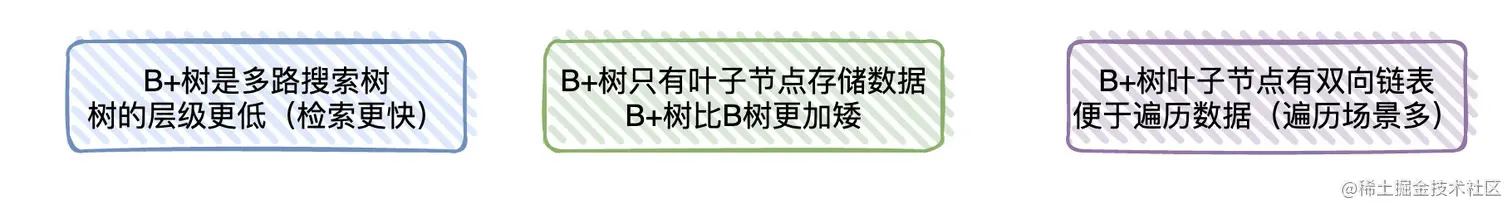 - B+树永远是在叶子节点拿到数据,更加稳定。