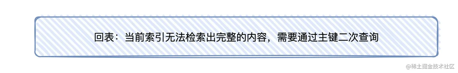 所谓的回表其实就是,当我们使用索引查询数据时,检索出来的数据可能包含其他列,但走的索引树叶子节点只能查到当前列值以及主键ID,所以需要根据主键ID再去查一遍数据,得到SQL 所需的列