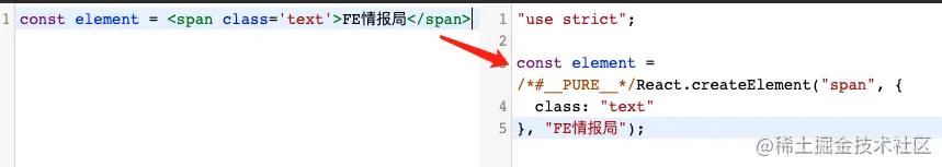 // const element = <span class='text'>FE情报局</span>