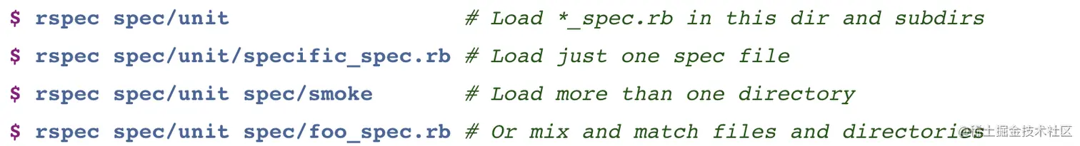 我们可以指定文件夹或者文件,RSpec只会运行我们指定的文件夹及文件中定义的spec,命令如下:
