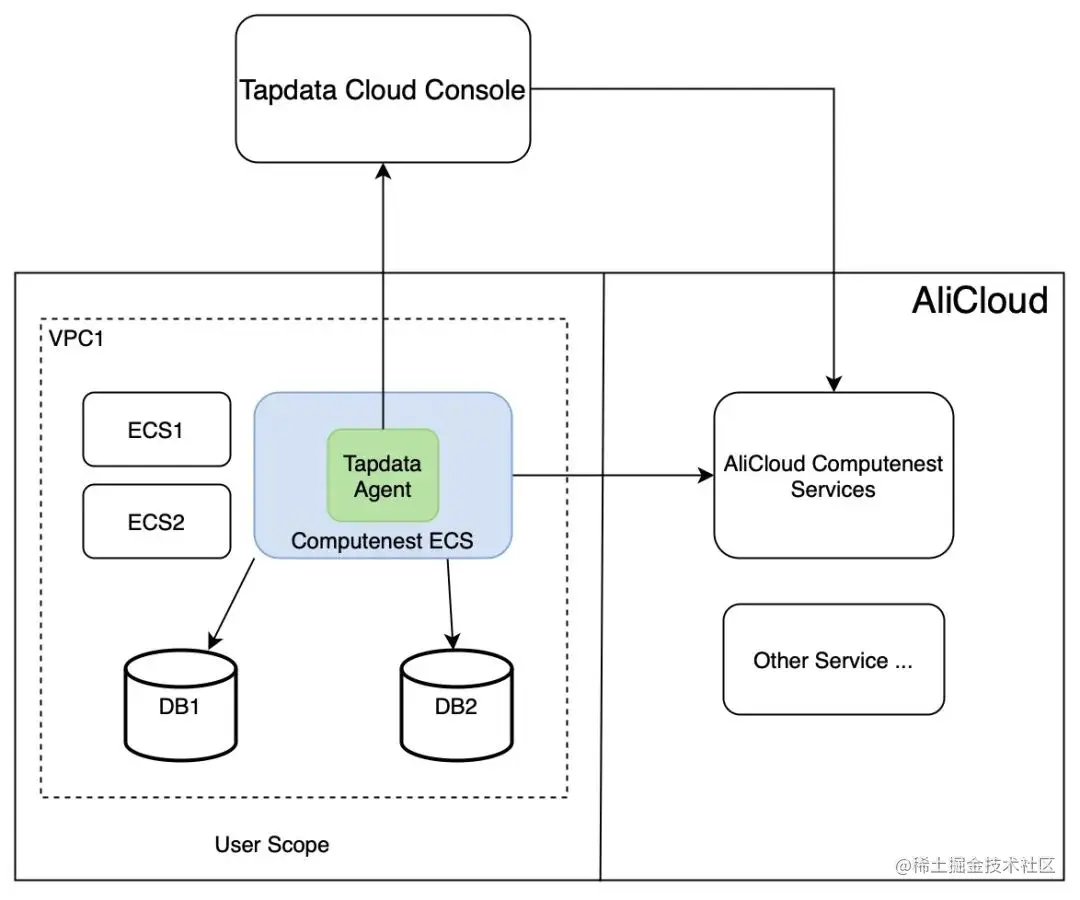 谈及此次双方联合,Tapdata 创始人 TJ 表示,“Tapdata Cloud 为客户提供开箱即用的实时数据库同步和灵活的实时 ETL 能力。借助计算巢提供的自动化部署能力,客户可以一键在 VPC 里部署 Tapdata Agent,加速获取 Tapdata 强大能力的同时,数据安全性也能得到最大限度的保障”。
