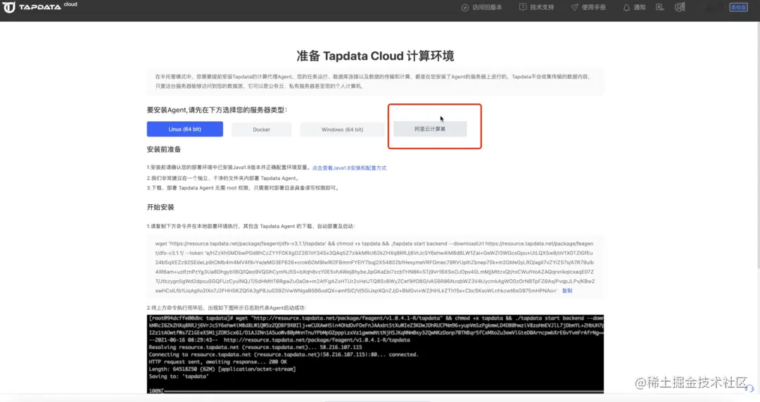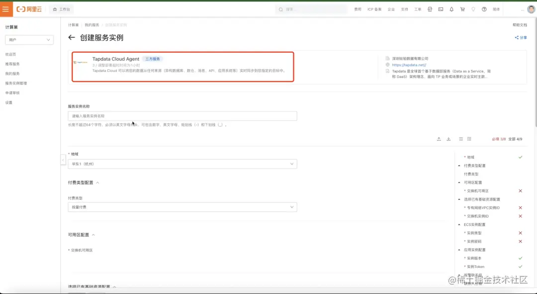 作为 Tapdata Cloud 使用操作的第一步,Agent 的安装与部署是开启 Tapdata Cloud 实时数据之旅的关键。在 3.0 版本下,支持用户在 Agent 部署环节选择【阿里云计算巣】服务,该模式支持自动部署 Agent 到指定账号下的 ECS 实例上,用户可以按需选择实例部署的地域、可用区以及 VPC 等相关配置。