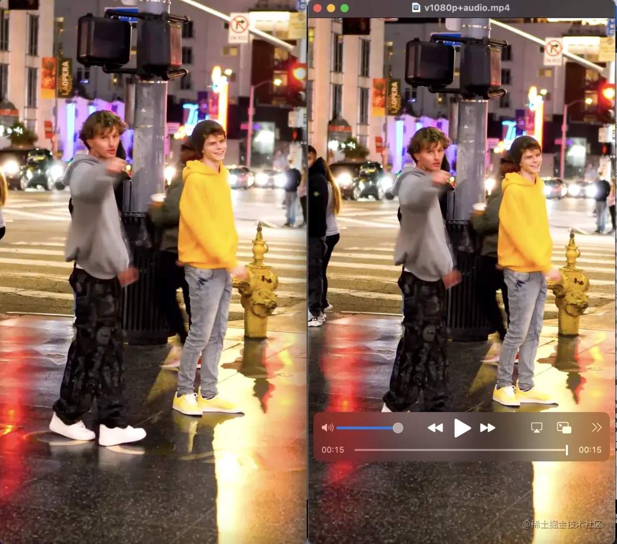 效果如下,左图为放大裁剪后的视频,右图为原视频: