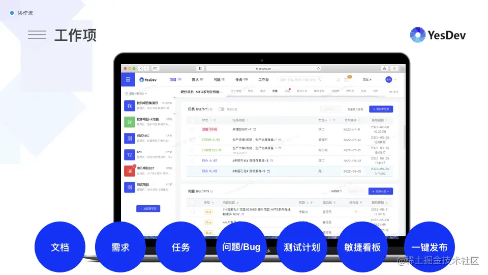 作为新一代的研发协同工具,YesDev在多人协同和集成研发办公,有以下特色和亮点: