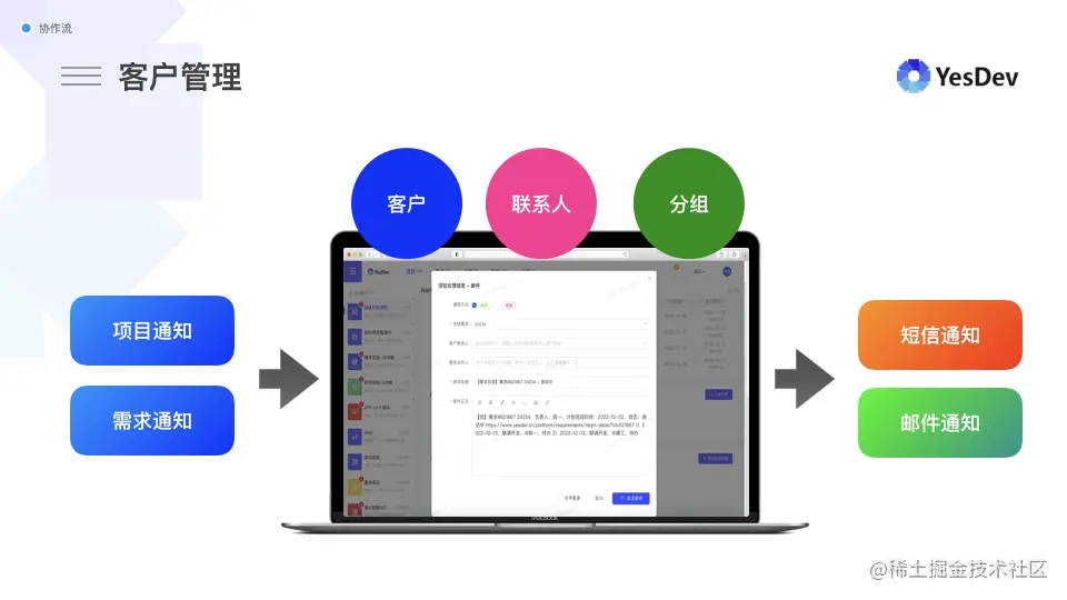 - 7、可以给客户进行短信、邮件等需求进度的通知推送和记录。