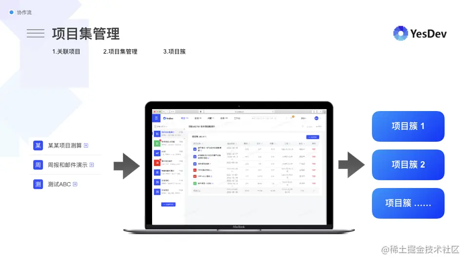 而YesDev的简单之处就在于把项目简单化(多功能合一)、清晰化(只关注当前的项目)、实时化(智能聚合感知最新项目动态)和个性化(信息找人,不需要让人去整理找信息)。