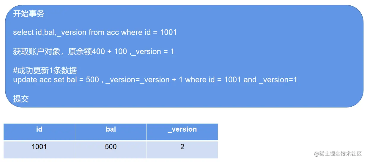 Account acc = 执行:”select id,bal,_version from acc where id = 1001”;