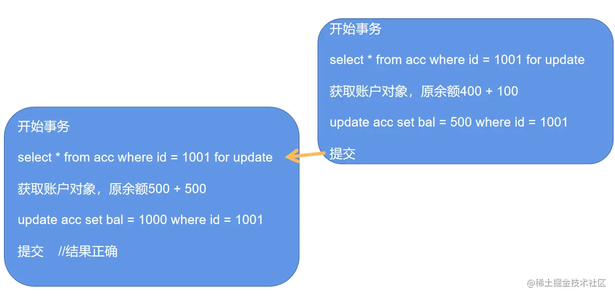 常见的解决办法是通过for update子句将查询语句hang住,这样并行处理就变为串行执行,这种处理方式被称为“悲观锁”