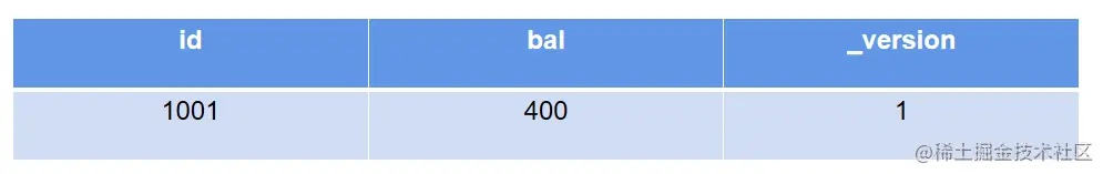 示例表样:增加_version字段,通过版本实现乐观锁版本控制