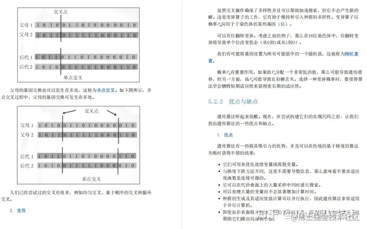 为了进行交叉操作,我们在两个亲本染色体上选择一个随机位置,然后在该位置上以概率Px交换它们的遗传信息。这产生了两个新的后代。当交叉发生在随机位置时,其被称为一点交叉(或单点交叉)。如下图所示,一点交叉过程中,在亲本染色体中选择一个随机位置,并交换相应的基因。