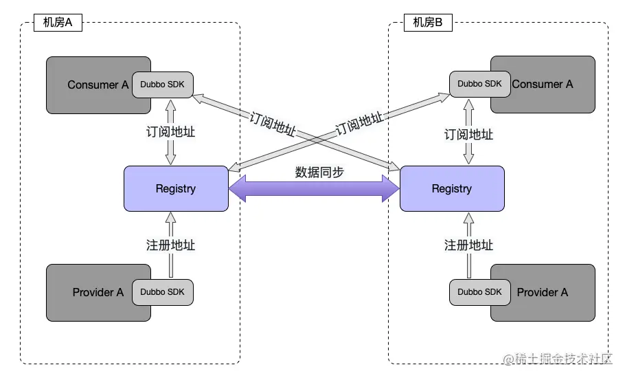 多元数据中心:Dubbo 支持多元数据中心:用于应对容灾等情况导致某个元数据中心集群不可用,此时可以切换到另一个元数据中心集群,保证元数据中心能够正常提供有关服务元数据的管理能力。