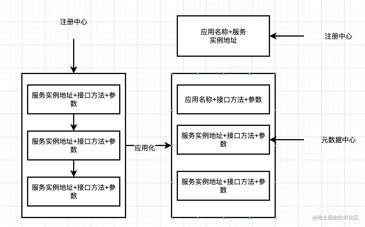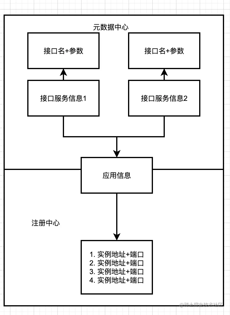 - 元数据中心-存储:应用名称->接口信息+参数信息
