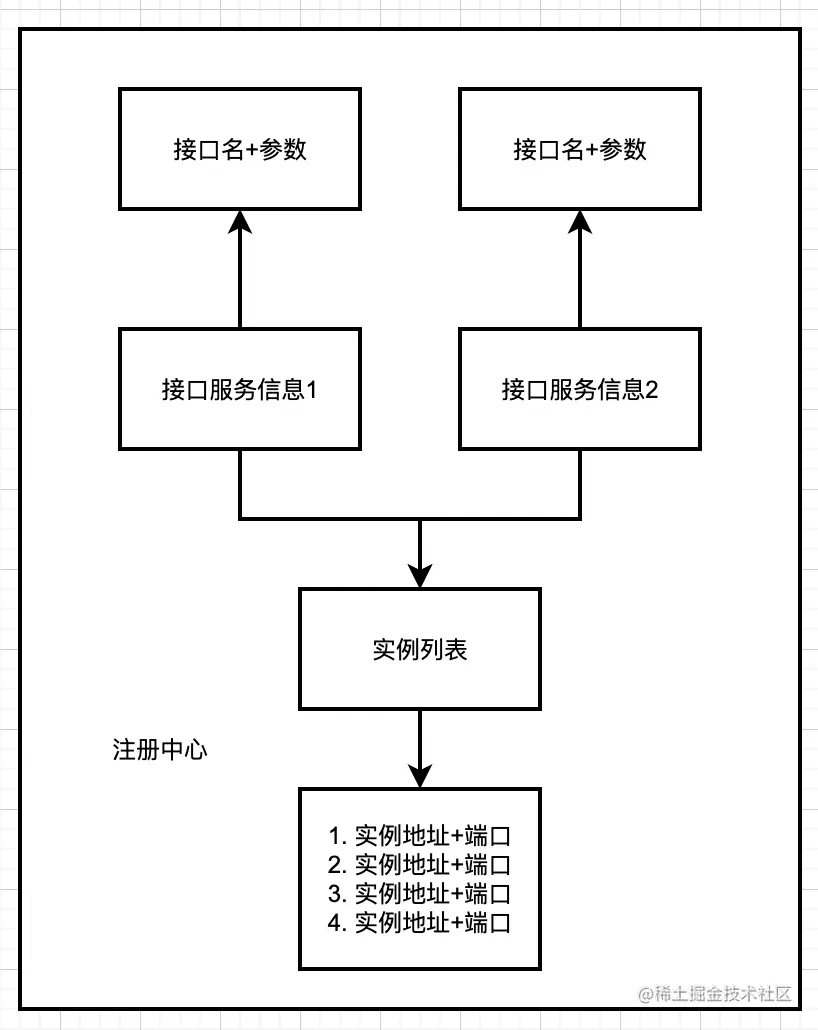 - 注册中心-存储:应用名称->接口服务实例地址