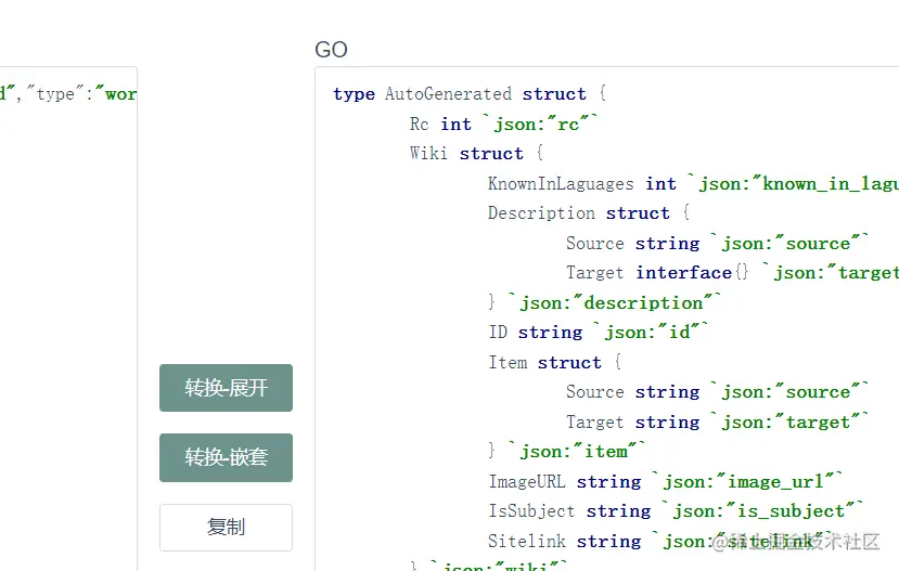 那么如何处理响应呢,我们还需要声明一个结构体去接收,我们通过oktools工具实现转化