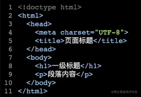 doctype标记了当前使用的html版本<html></html>根标签<head></head>放一些页面的元数据,是页面需要但是不用直接呈现给用户的。比如页面 用的编码,页面的标题……<body></body>需要呈现给用户的数据