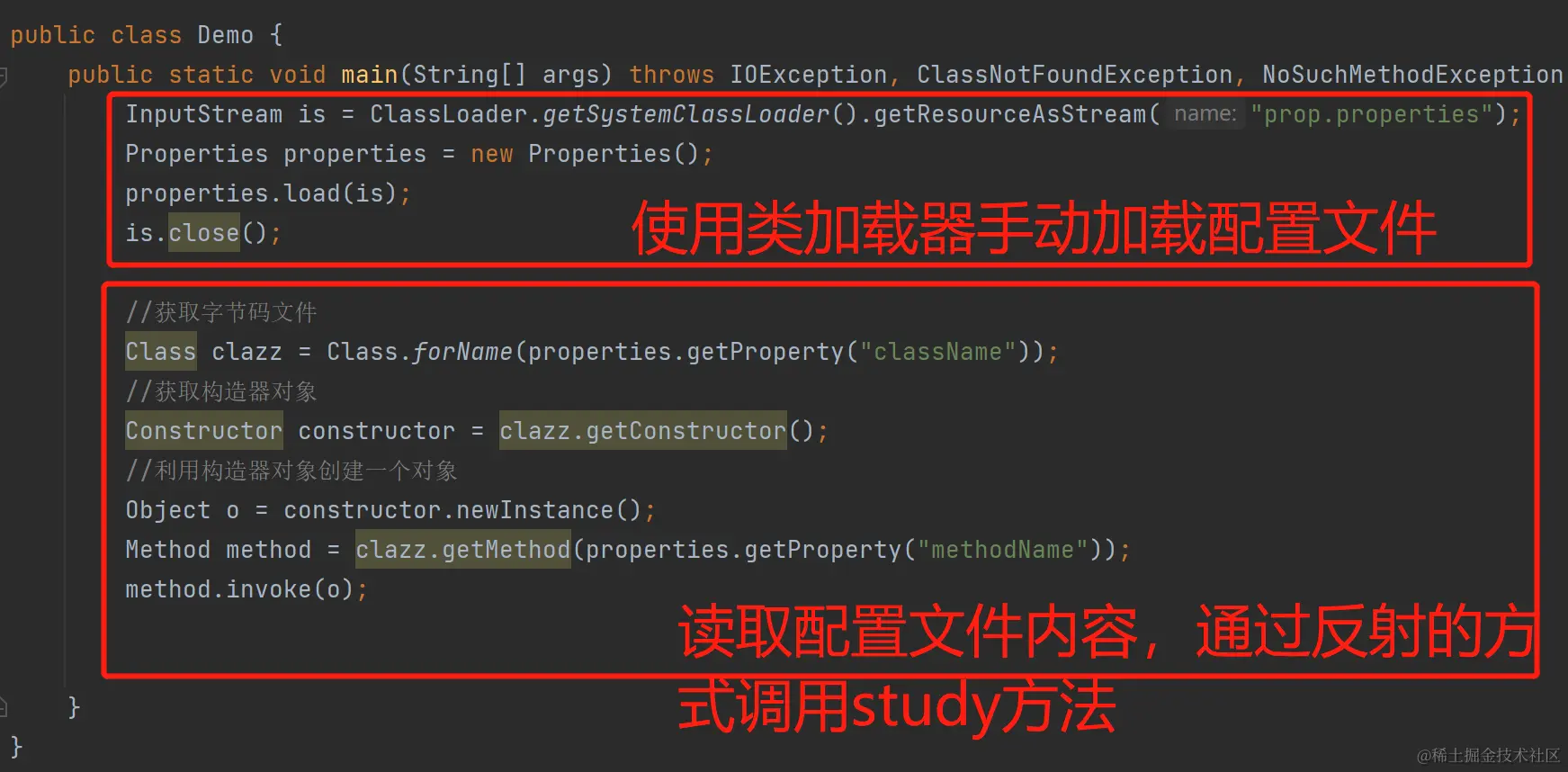 如果想要调用其他类的study方法,不需要修改源代码通过new创建对象,只需要修改prop文件中的className
