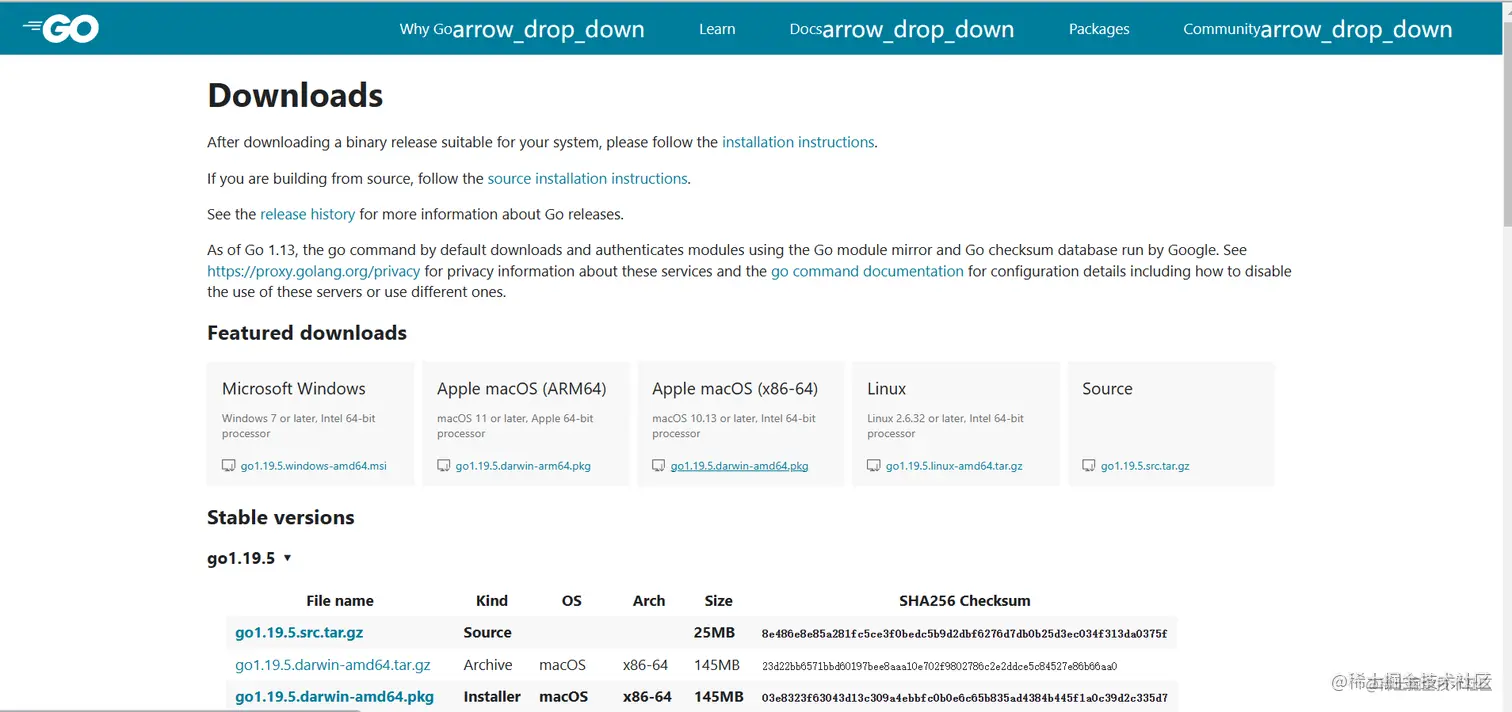 这一步比较简单,直接打开go的官网,点击download即可,个别人打开慢可以用中国的镜像网站,之后访问的速度和下载第三方库的速度会快很多,之后傻瓜式安装一路到底即可。