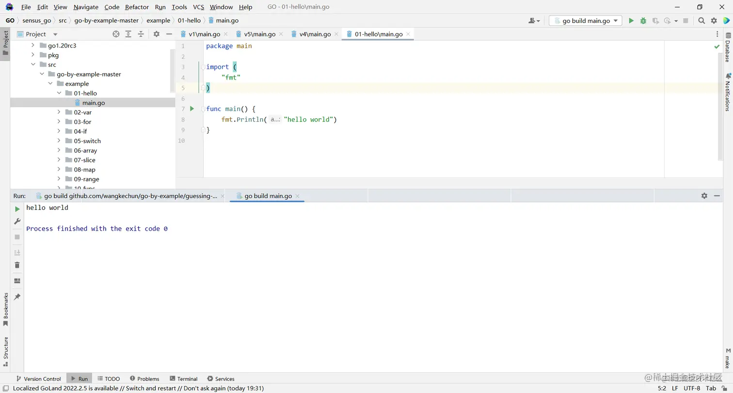5.下一行 fmt.Println(…) 可以将字符串输出到控制台,并在最后自动增加换行字符 \n。 使用 fmt.Print(“hello, world\n”) 可以得到相同的结果。 Print 和 Println 这两个函数也支持使用变量,如:fmt.Println(arr)。如果没有特别指定,它们会以默认的打印格式将变量 arr 输出到控制台。
