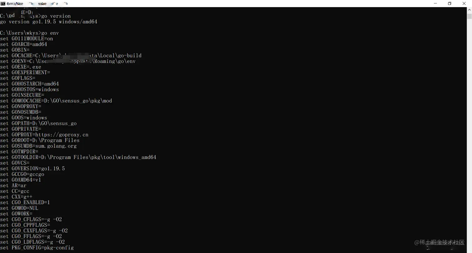 二、查看是否安装配置成功。 使用快捷键win+R键,输入cmd,打开命令行提示符,在命令行输入 go env #查看得到go的配置信息 go version #查看go的版本号