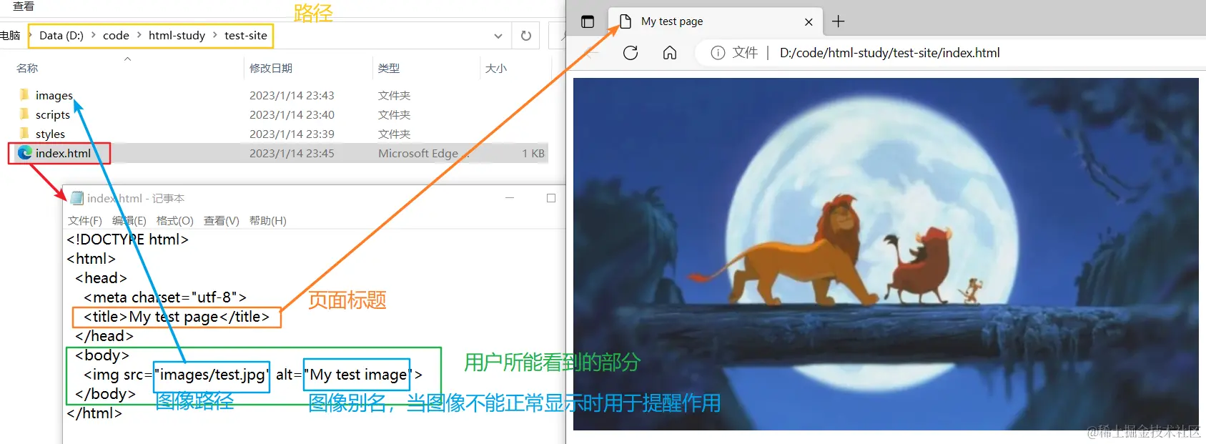 疑惑点:图片My test image位于本机的images文件夹中,在本机内可以正常运行,但码上掘金没有建立images文件夹,故图片显示不出来,求大神指教如何解决