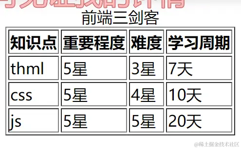 14、<tbody>标签表示表格内容,一般放<tr>和<td>标签。