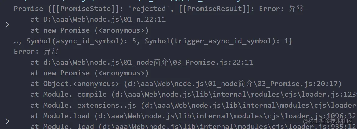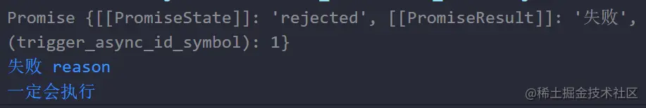 - 当通过 reject 存储数据或 异常 时 PromiseState 变为rejected,此时PromiseResult为reject存储的数据或为异常对象