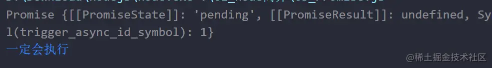 promise.then 是异步代码,没有通过reslove或者reject返回值 ,则 PromiseState处于pending状态 并且PromiseResult是undefined