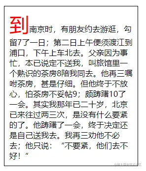 我们可以使用这个属性让首字下沉,并加上特殊的样式,看下面这段代码