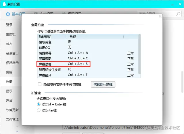 **第1步.**使用热键“Ctrl+Alt+S”打开QQ的录屏功能。