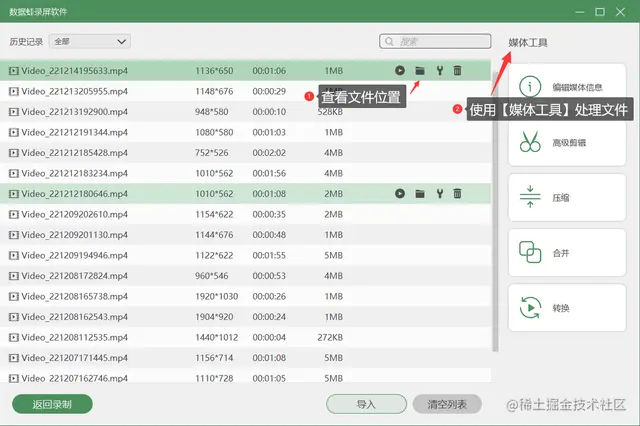 **步骤4.**录制过程如需标注视频内容,可以使用画笔、聚焦框等辅助工具,录制结束后,点击【完成】按钮,视频会自动保存到电脑上。在接下来跳出的【录制历史】页面您可以对文件进行后期处理。