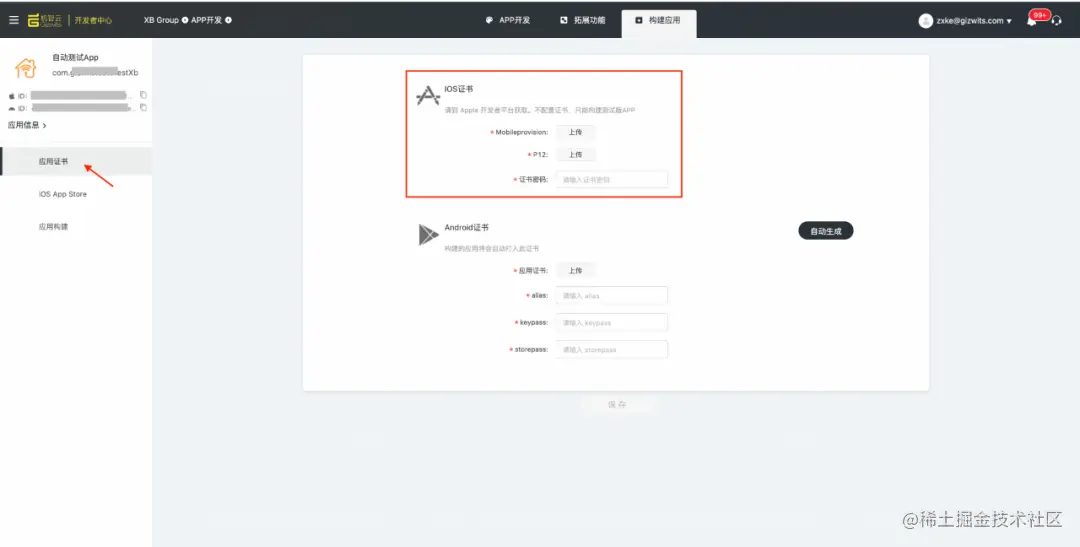 第二步:开通账号后,在developer.apple.com上可以生成iOS证书,将证书回填机智云开发者中心。