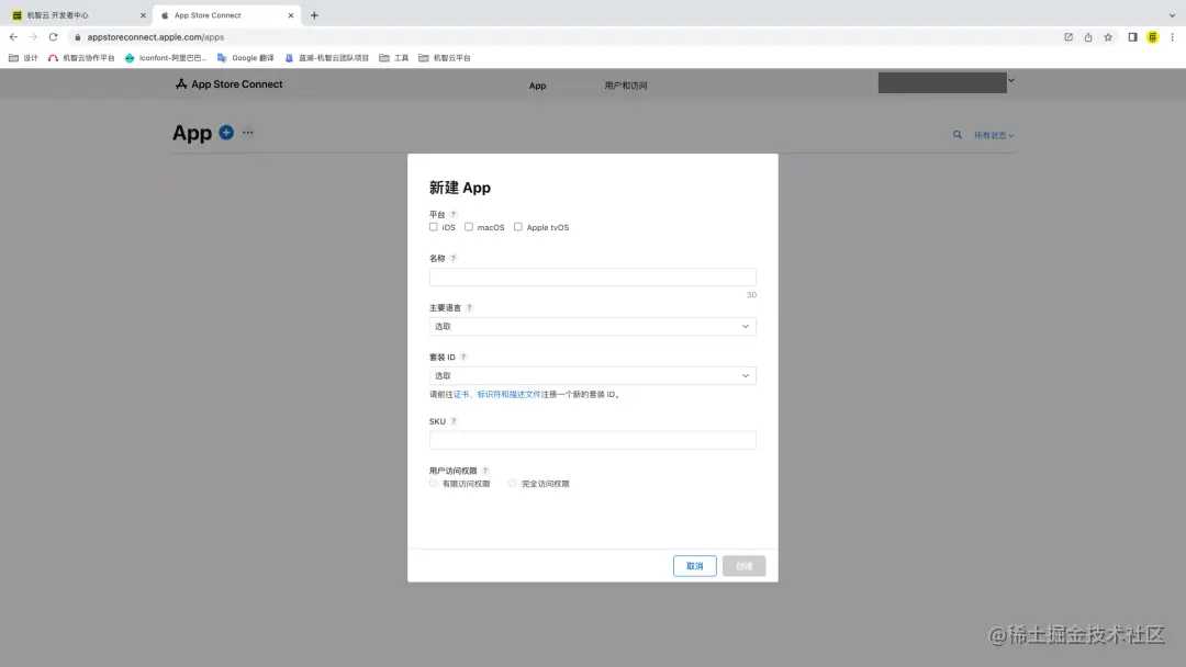 第一步:在 App Store Connect 后台(appstoreconnect.apple.com/login)开通苹果个人开发者账号,每年收费99美元(约合人民币699元),创建一个APP应用。