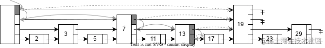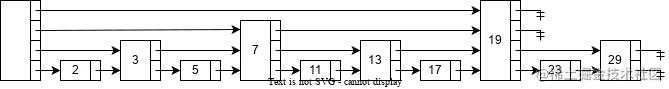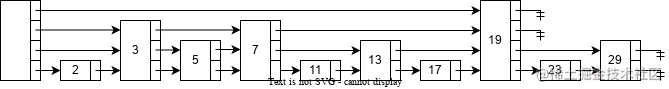 在这种数据结构中,每个元素都由一个节点表示。每个节点都有一个高度(height)或级别(level),表示节点所拥有的前向指针数量。每个节点的第个前向指针指向下一个级别为或更高的节点。
