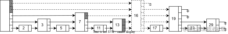 Figure.3将这种想法扩展,每个序数是4的倍数的节点都有一个指针指向下一个序数为4的倍数的节点。只有个节点被考查。