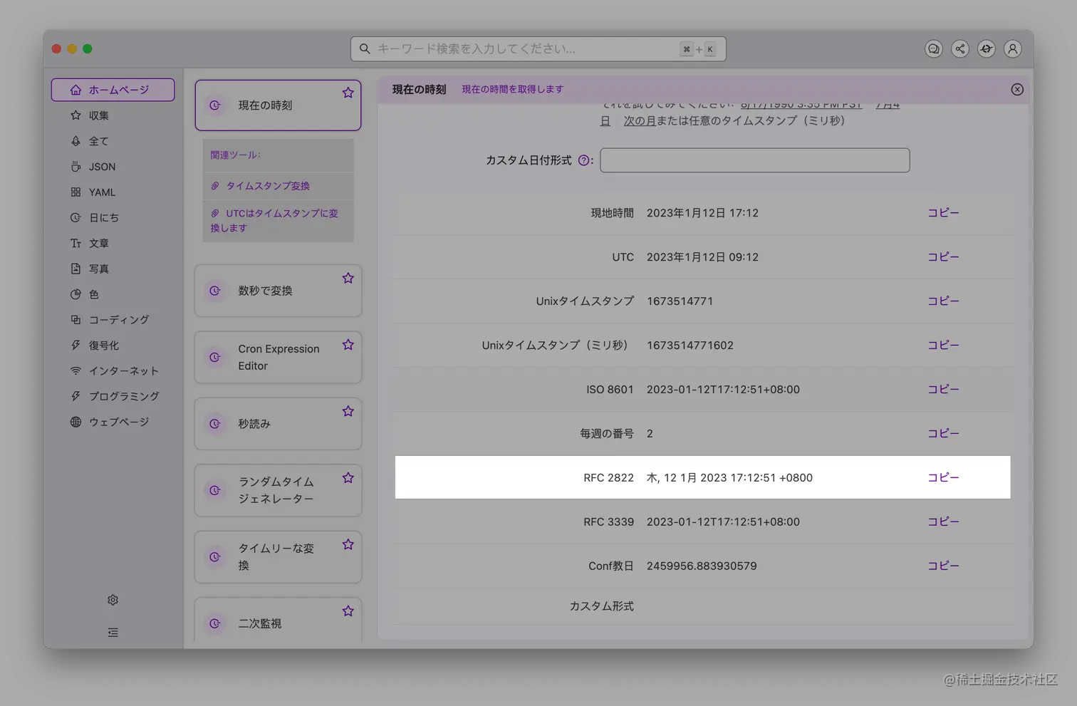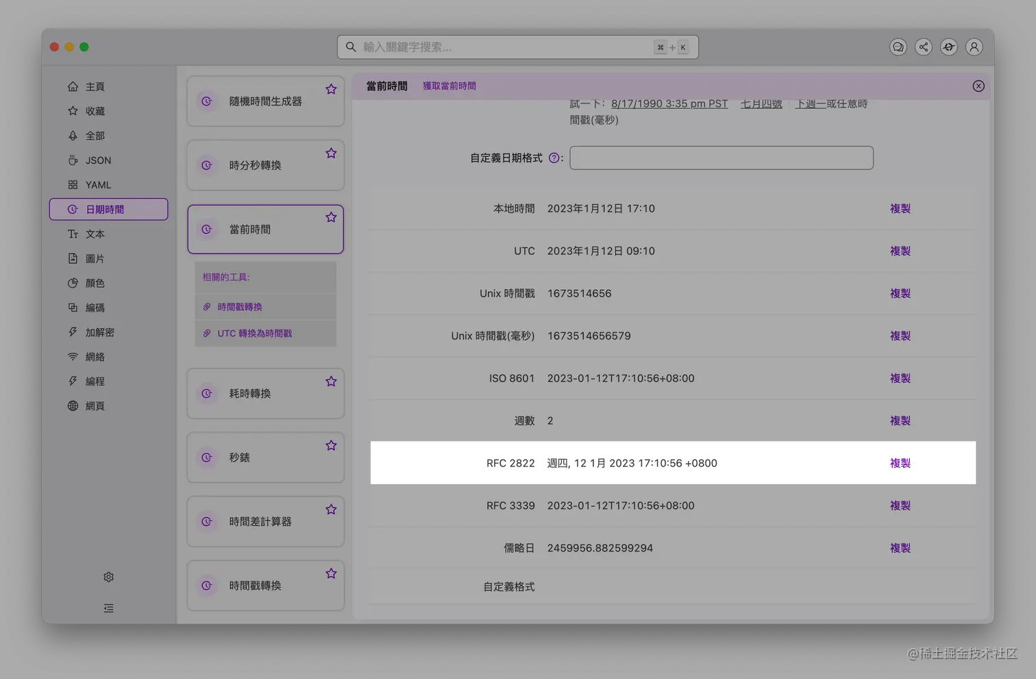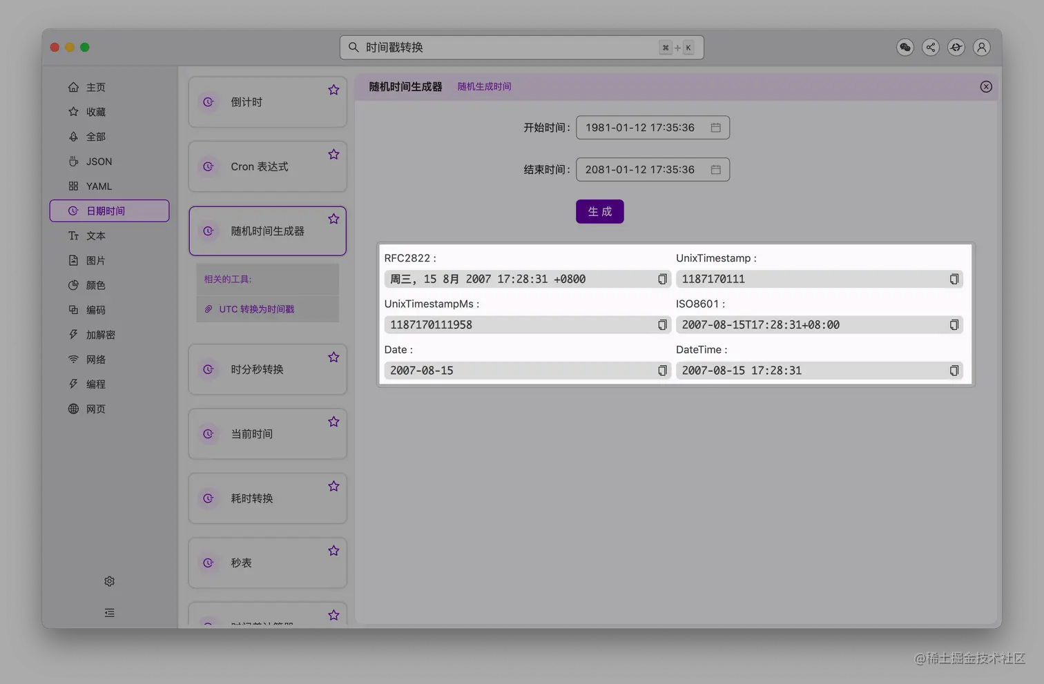 - 「随机时间生成器」、「时间戳转换」支持更多格式输出