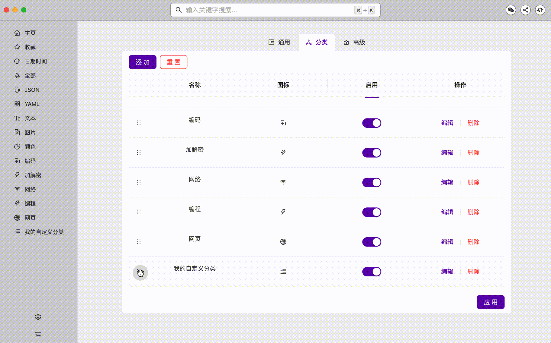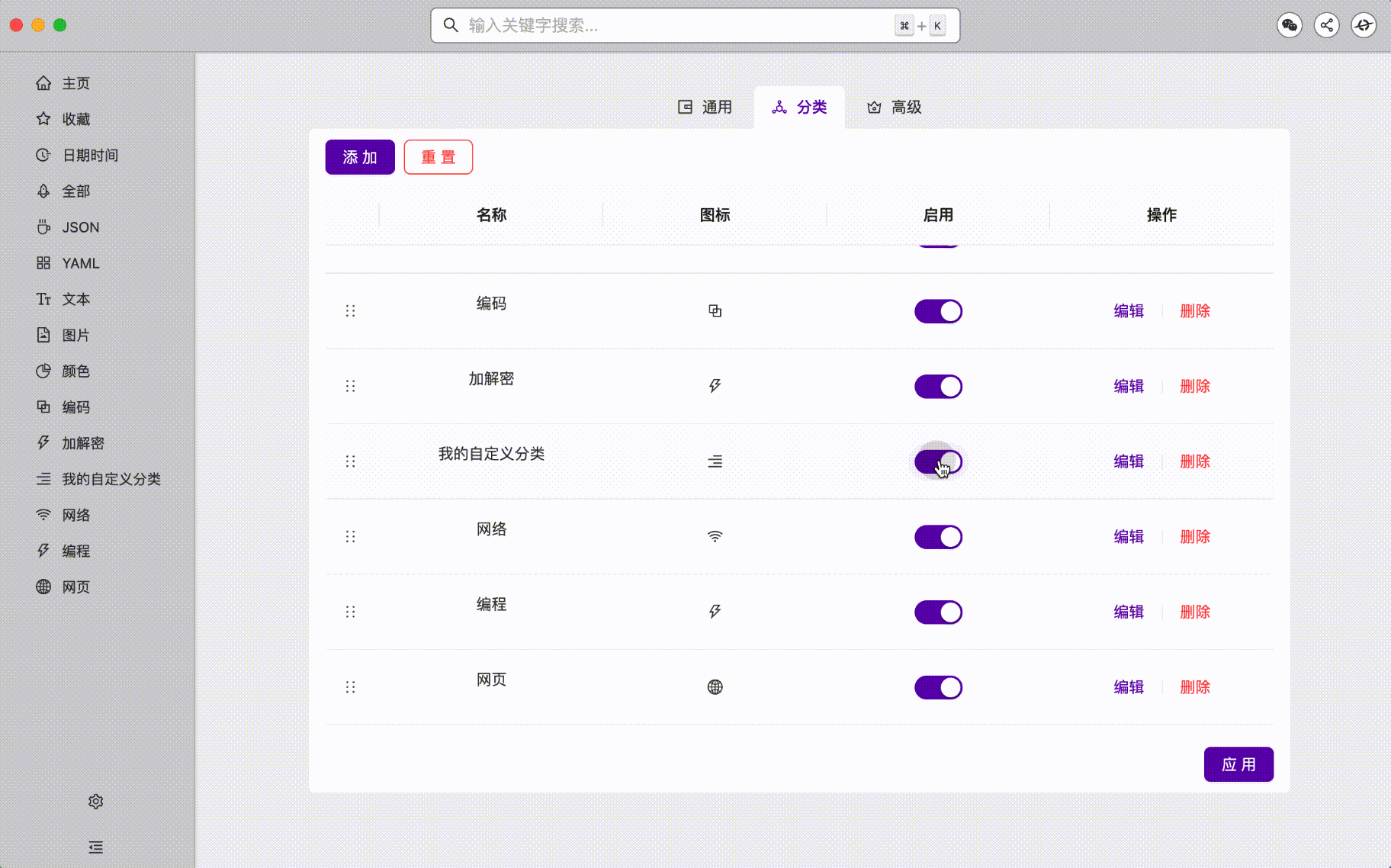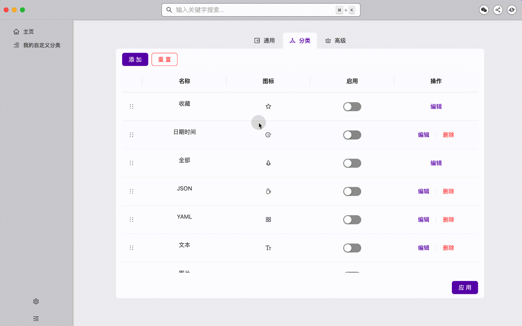新增自定义分类