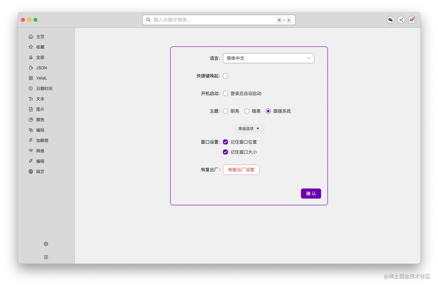 Mac 下支持 Command + , 快捷键打开设置
